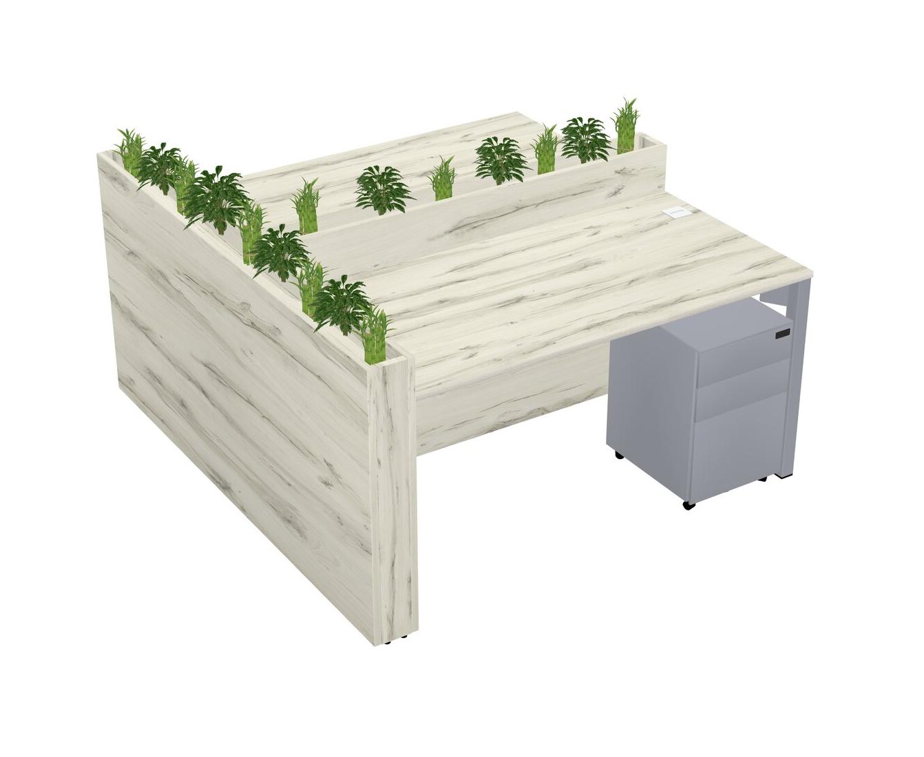 Heinne Holz Rectangular Shared Office Desk System Metal Mobile Drawers (Pots & Plants Sold Separately)
