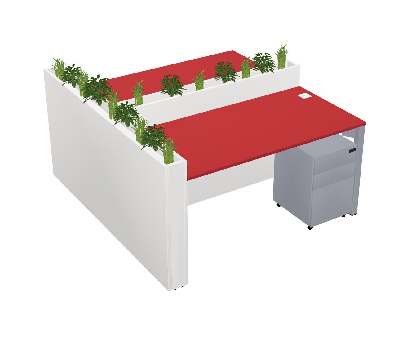 Prism Red Rectangular Shared Office Desk System Metal Mobile Drawers (Pots & Plants Sold Separately)