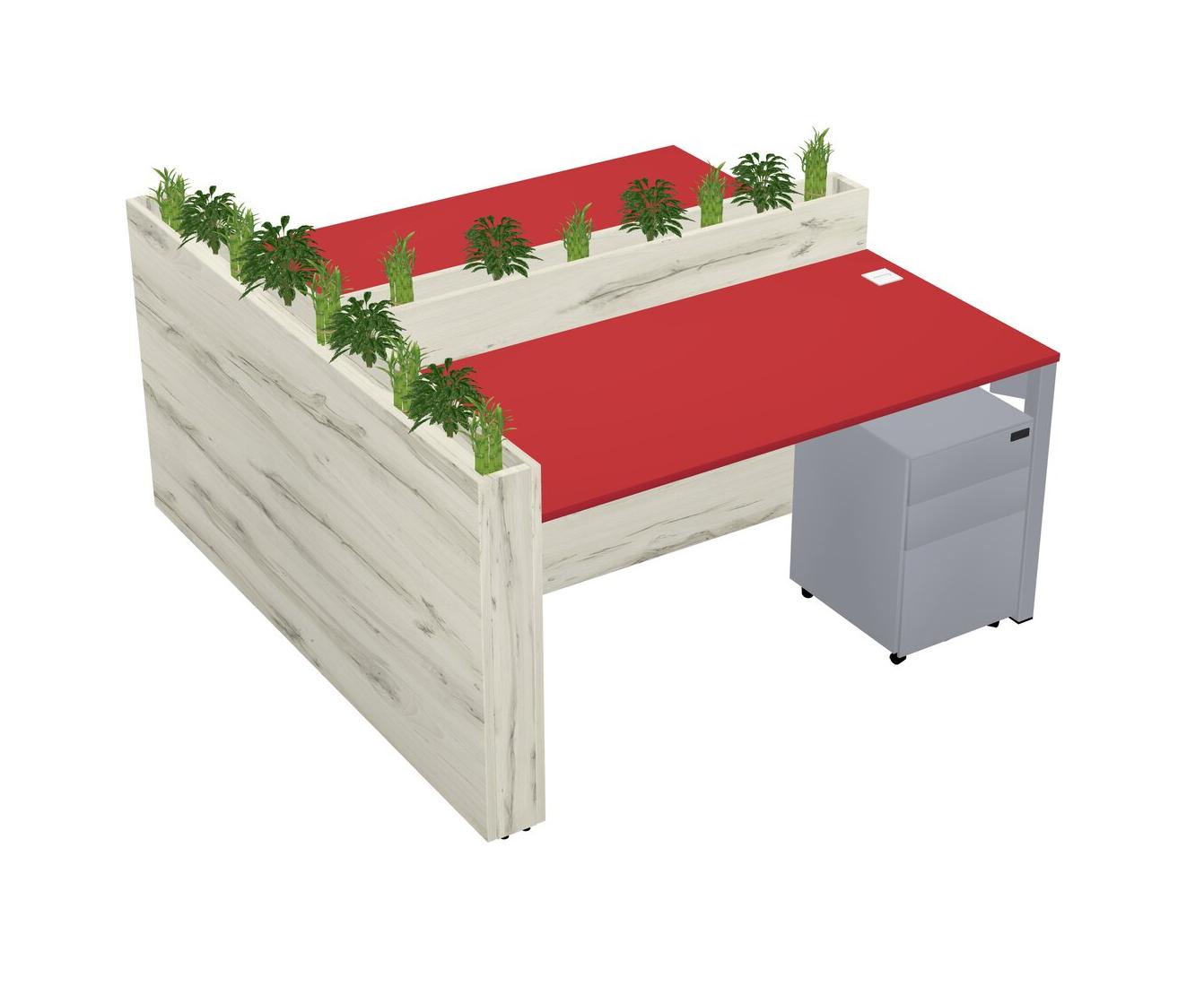 Prism Red Rectangular Shared Office Desk System Metal Mobile Drawers (Pots & Plants Sold Separately)