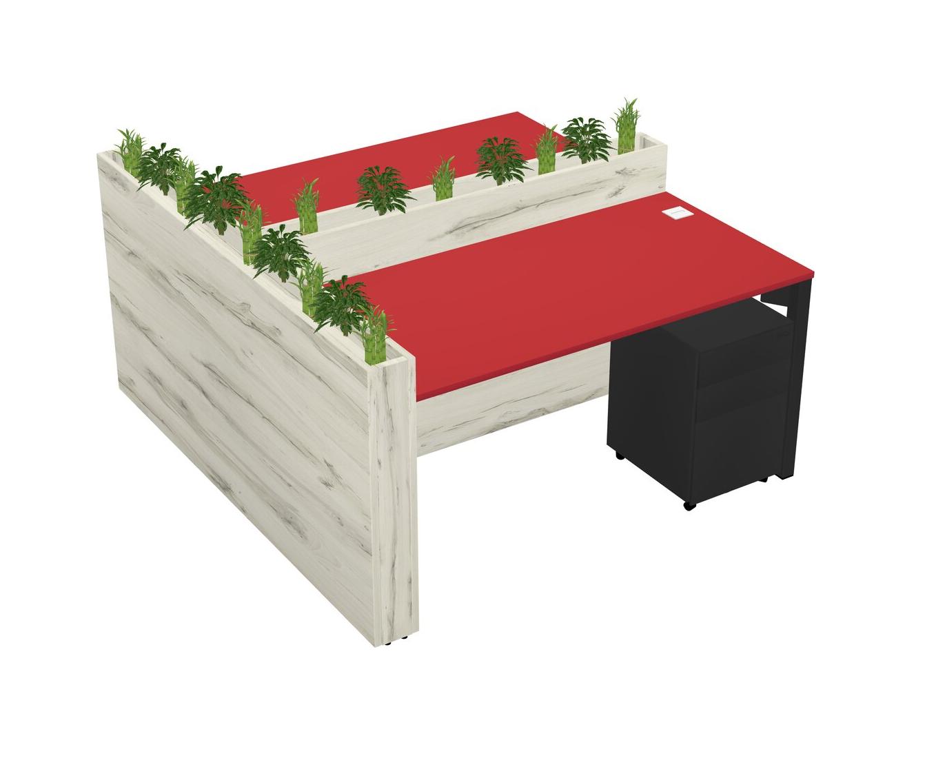 Prism Red Rectangular Shared Office Desk System Metal Mobile Drawers (Pots & Plants Sold Separately)