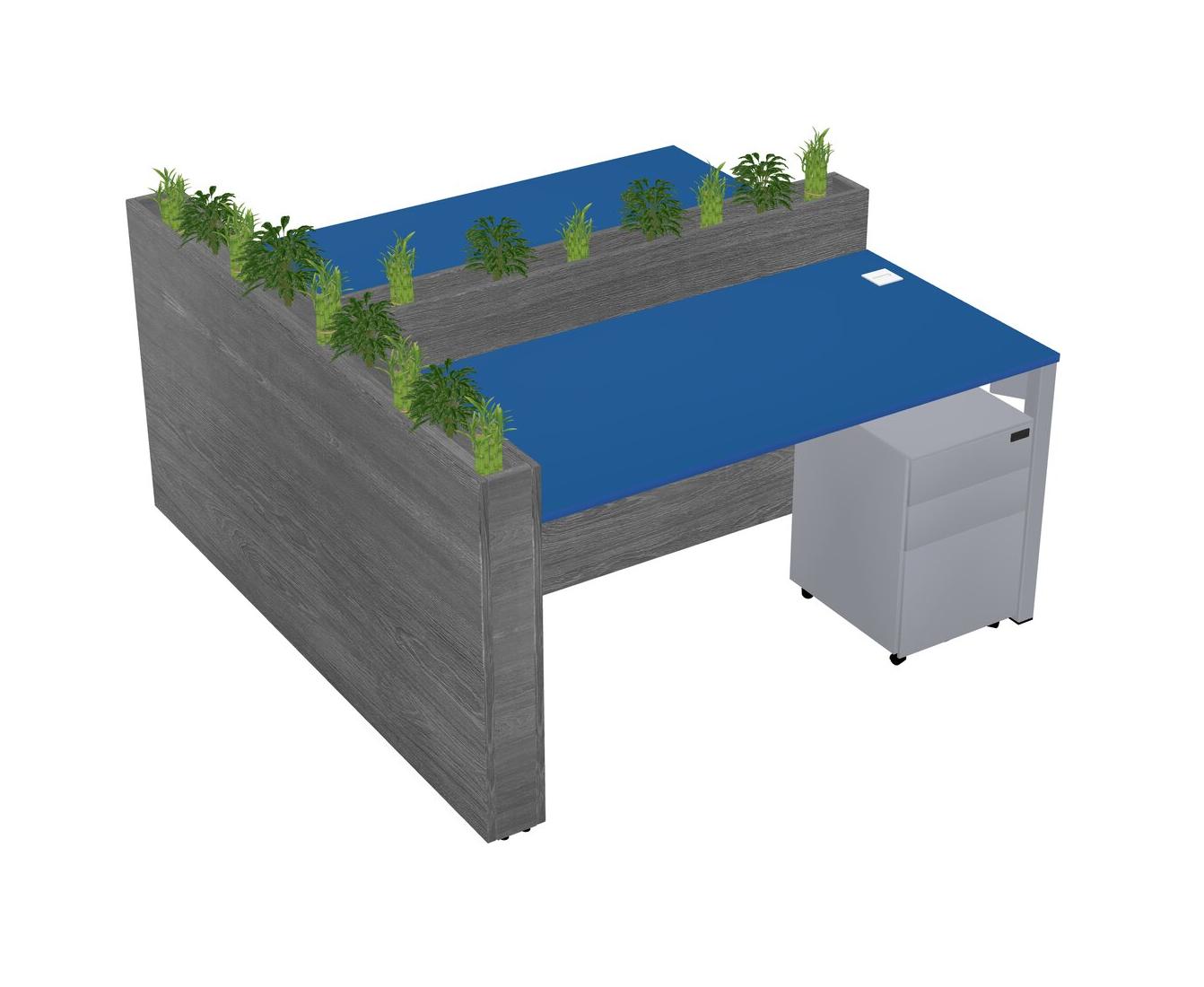 Prism Blue Rectangular Shared Office Desk System Metal Mobile Drawers (Pots & Plants Sold Separately)