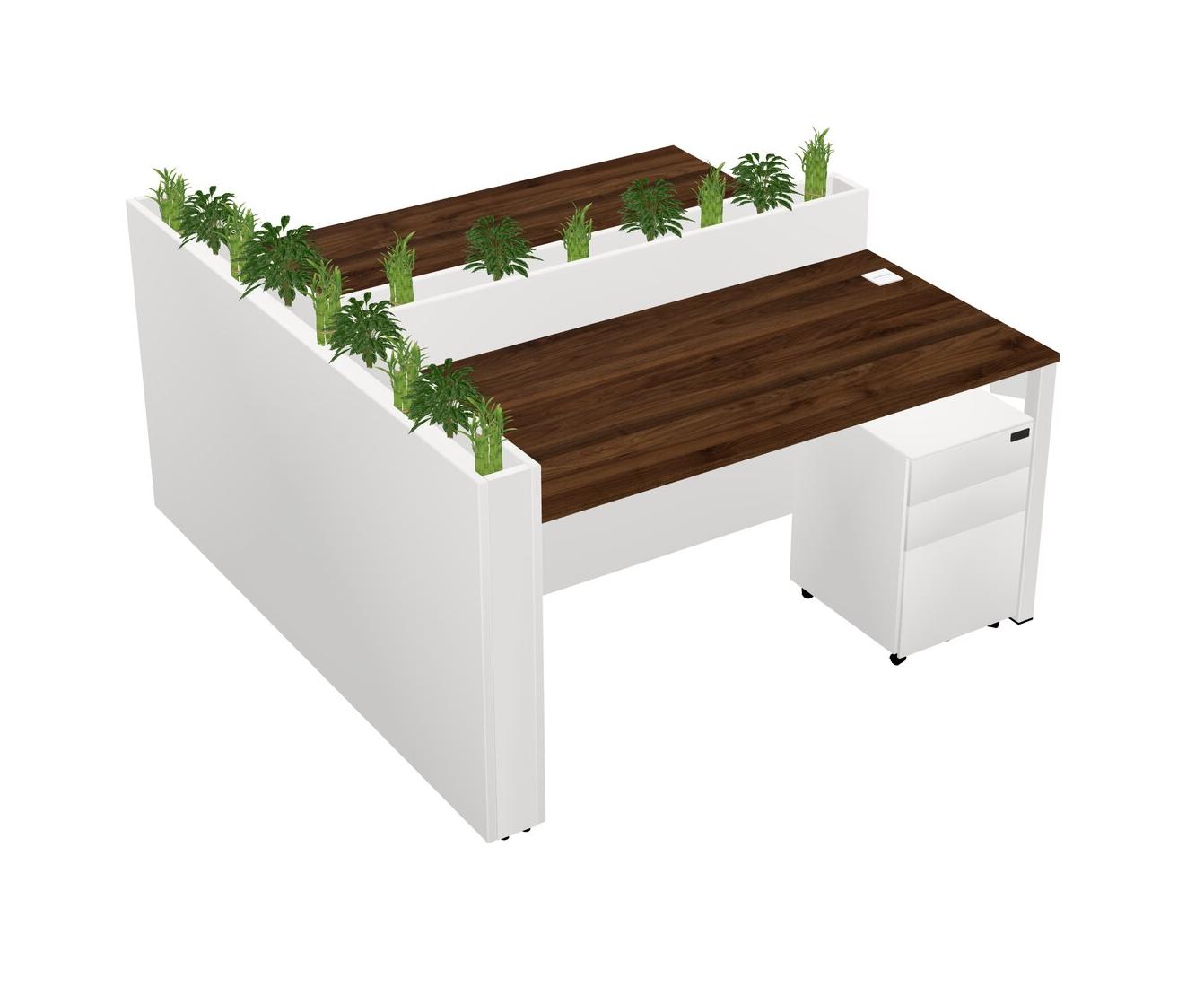 Columbia Walnut Rectangular Shared Office Desk System Metal Mobile Drawers (Pots & Plants Sold Separately)