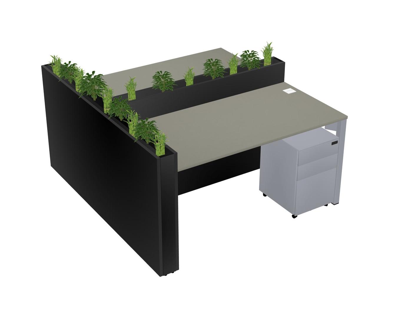 Grey Shadows Rectangular Shared Office Desk System Metal Mobile Drawers (Pots & Plants Sold Separately)