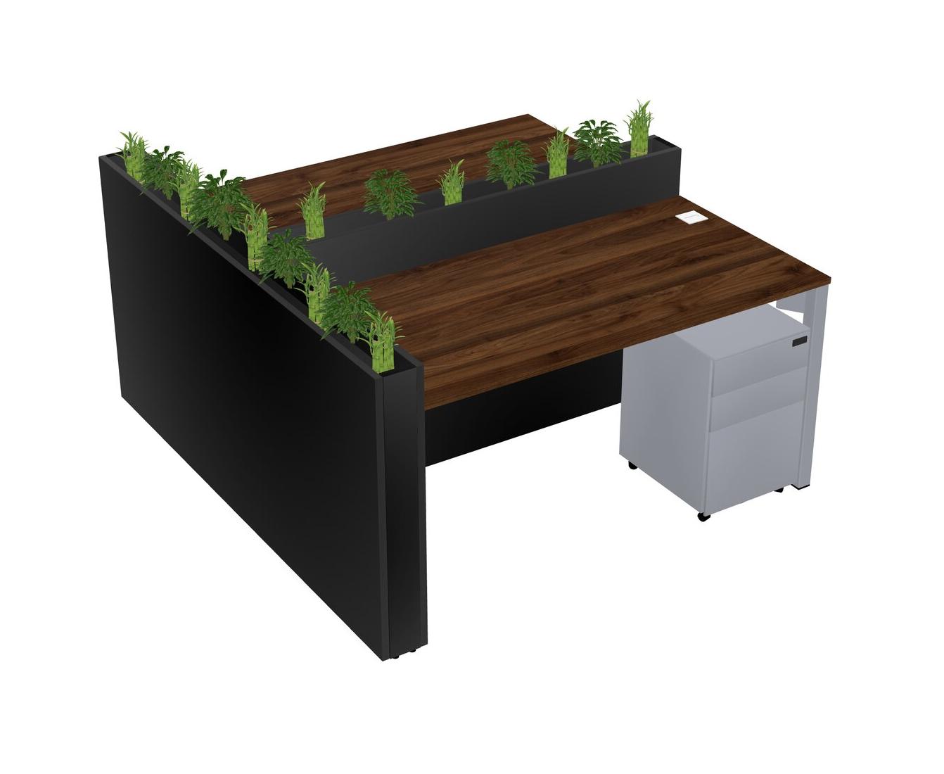 Columbia Walnut Rectangular Shared Office Desk System Metal Mobile Drawers (Pots & Plants Sold Separately)