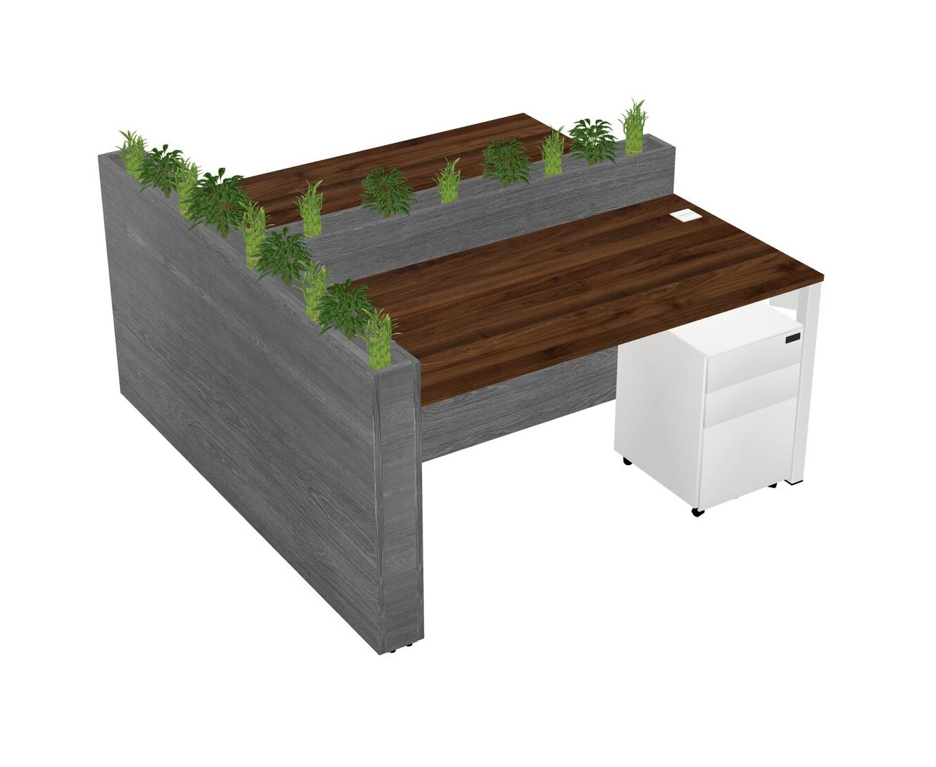 Columbia Walnut Rectangular Shared Office Desk System Metal Mobile Drawers (Pots & Plants Sold Separately)