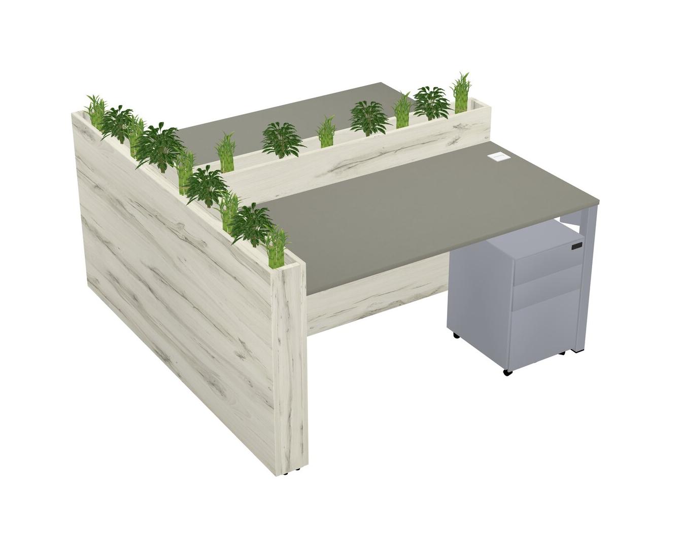 Grey Shadows Rectangular Shared Office Desk System Metal Mobile Drawers (Pots & Plants Sold Separately)