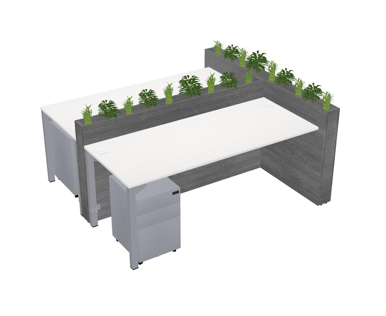 White Rectangular Shared Office Desk System Metal Mobile Drawers (Pots & Plants Sold Separately)