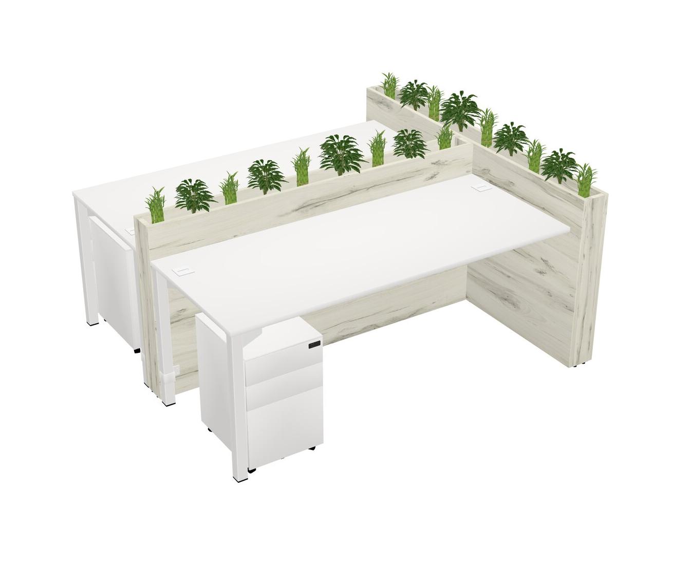 White Rectangular Shared Office Desk System Metal Mobile Drawers (Pots & Plants Sold Separately)