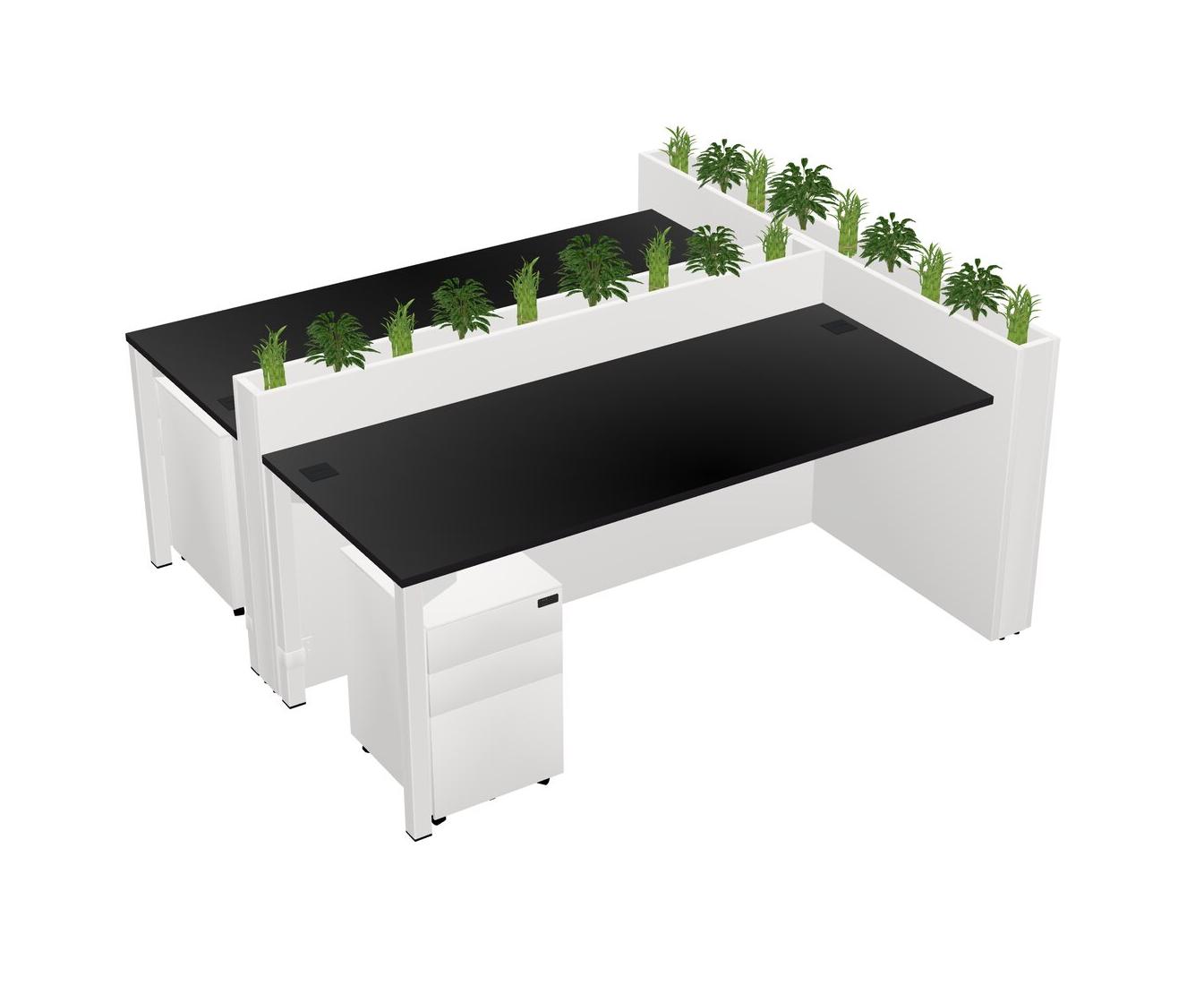 Black Rectangular Shared Office Desk System Metal Mobile Drawers (Pots & Plants Sold Separately)