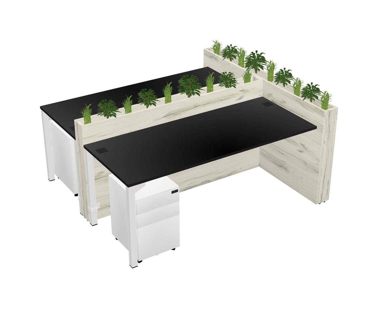 Black Rectangular Shared Office Desk System Metal Mobile Drawers (Pots & Plants Sold Separately)