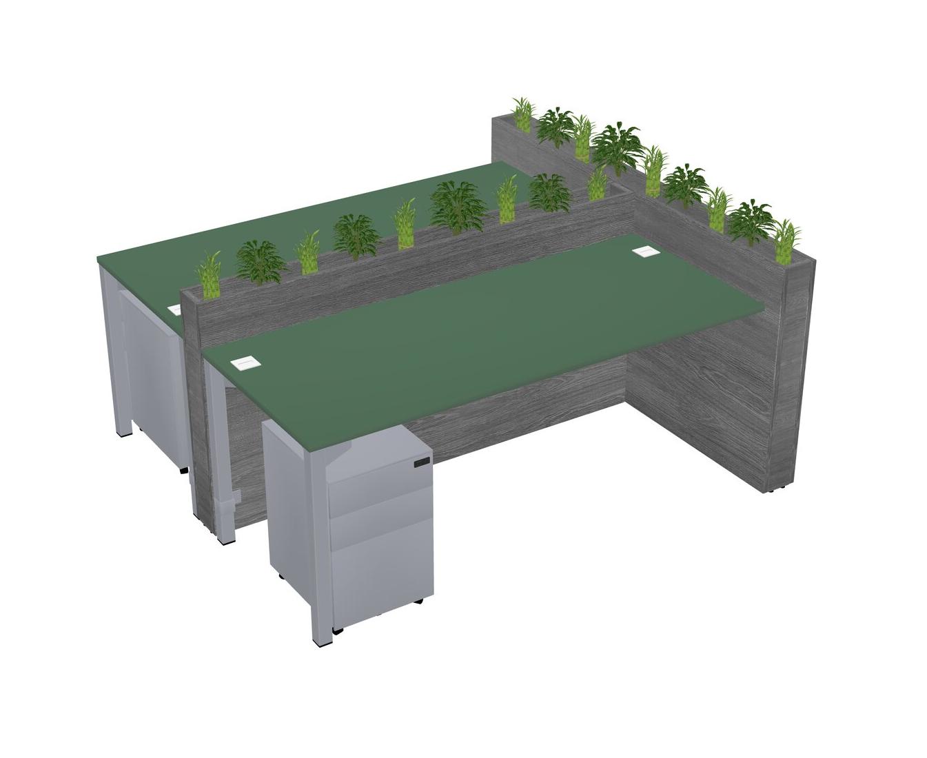 Green Rectangular Shared Office Desk System Metal Mobile Drawers (Pots & Plants Sold Separately)