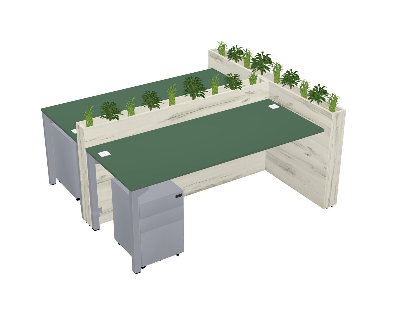Green Rectangular Shared Office Desk System Metal Mobile Drawers (Pots & Plants Sold Separately)