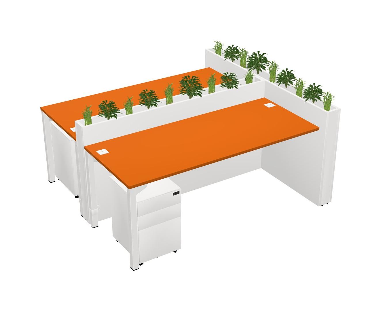 Orange Rectangular Shared Office Desk System Metal Mobile Drawers (Pots & Plants Sold Separately)