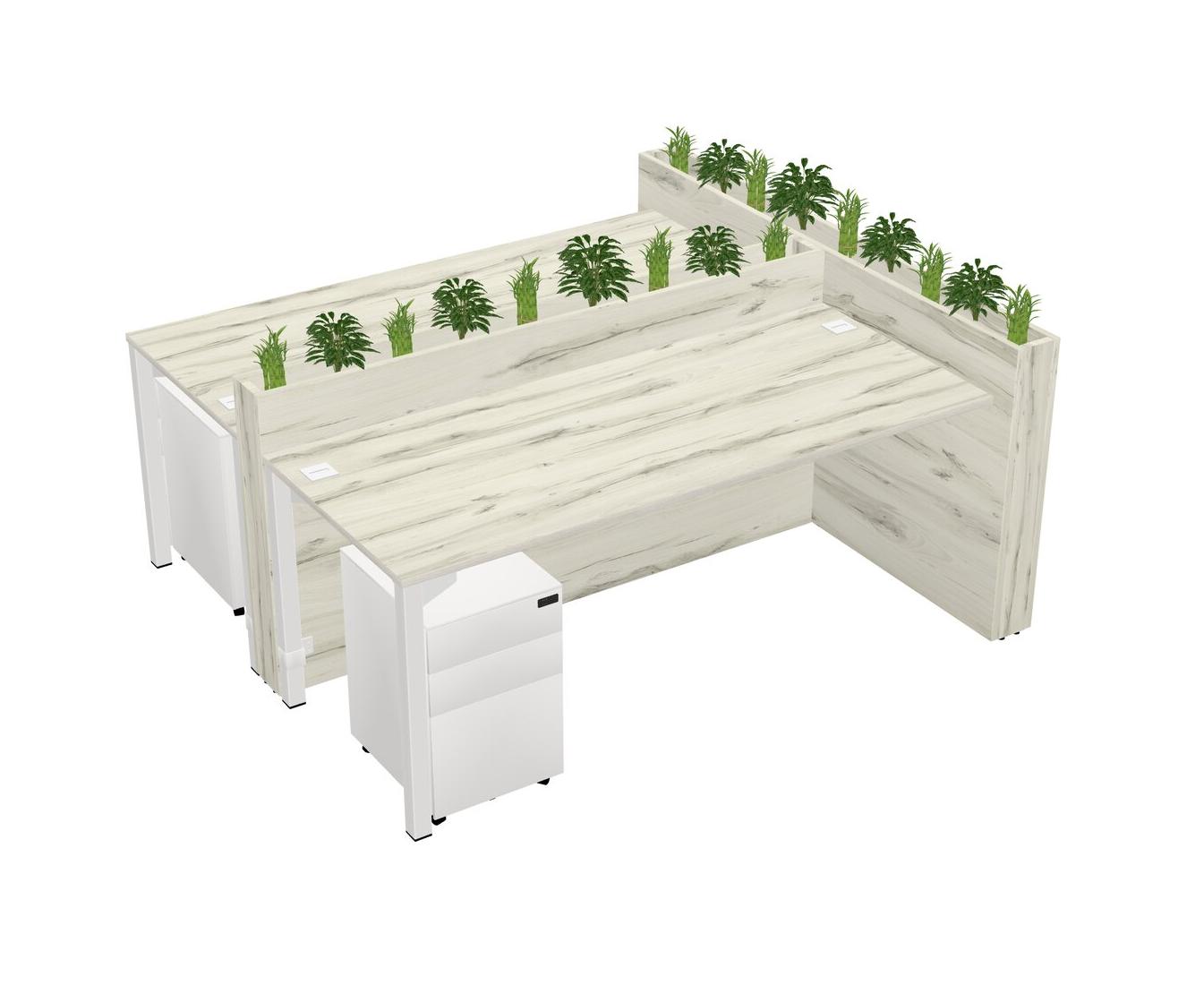 Heinne Holz Rectangular Shared Office Desk System Metal Mobile Drawers (Pots & Plants Sold Separately)
