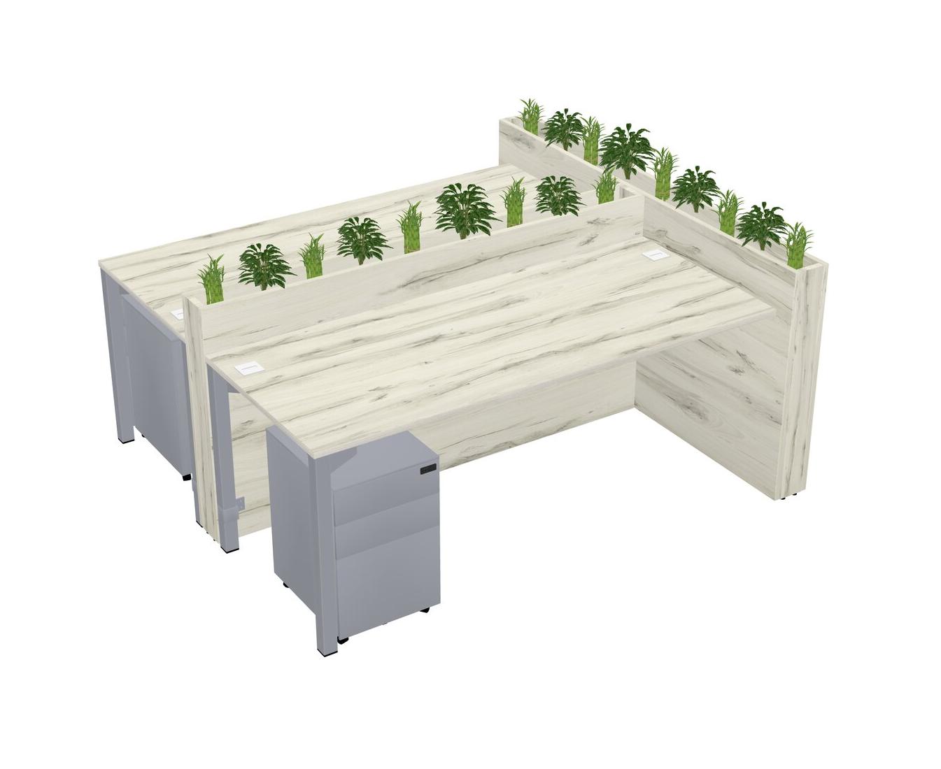 Heinne Holz Rectangular Shared Office Desk System Metal Mobile Drawers (Pots & Plants Sold Separately)