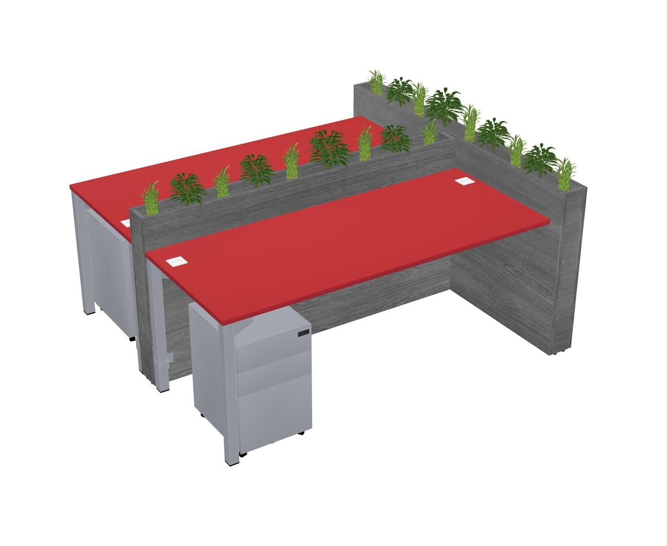 Prism Red Rectangular Shared Office Desk System Metal Mobile Drawers (Pots & Plants Sold Separately)