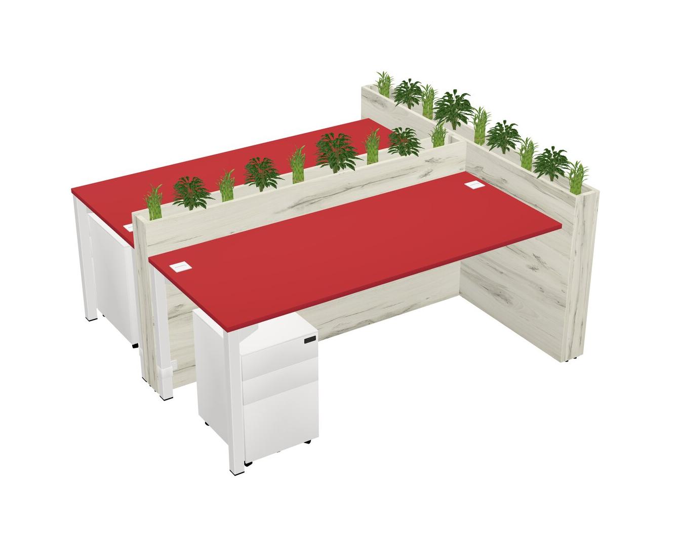 Prism Red Rectangular Shared Office Desk System Metal Mobile Drawers (Pots & Plants Sold Separately)