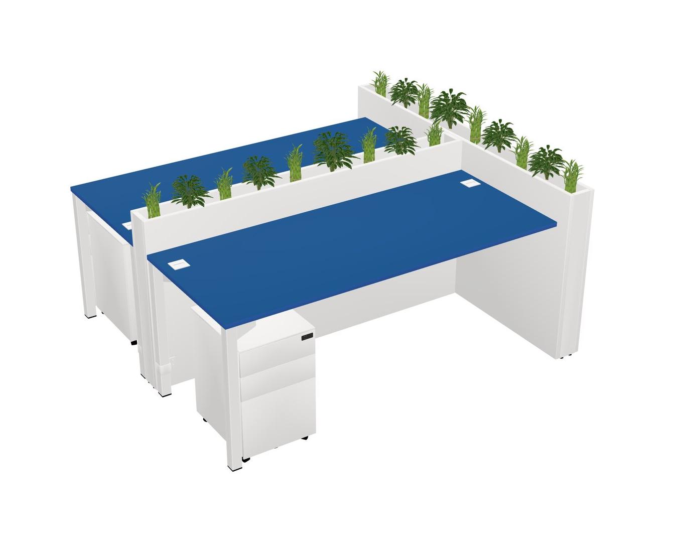 Prism Blue Rectangular Shared Office Desk System Metal Mobile Drawers (Pots & Plants Sold Separately)