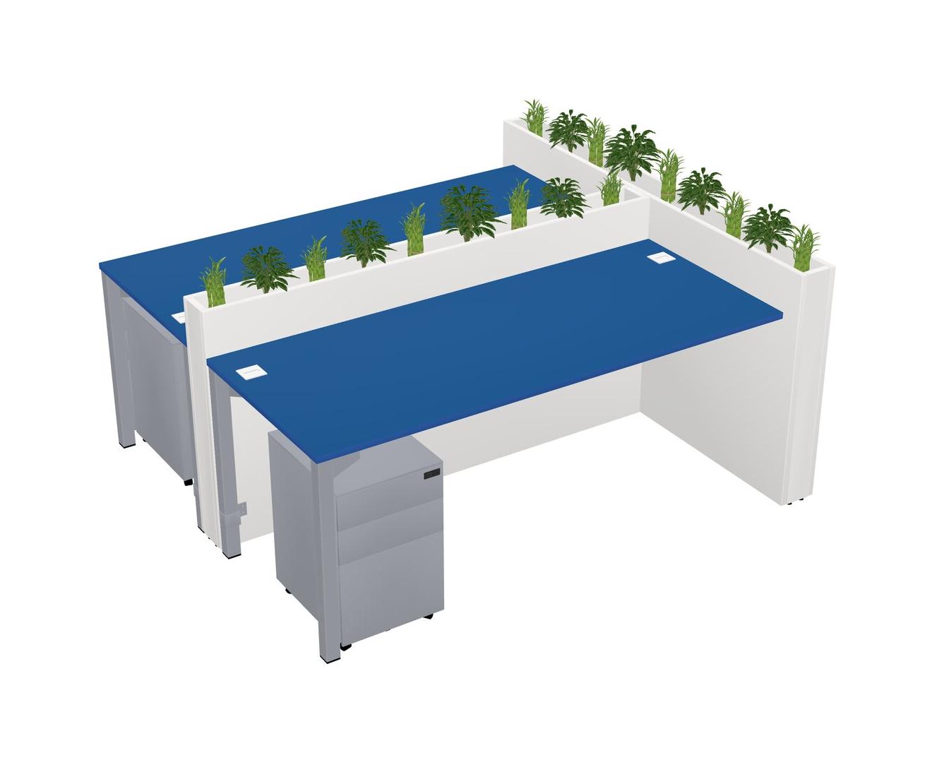 Prism Blue Rectangular Shared Office Desk System Metal Mobile Drawers (Pots & Plants Sold Separately)