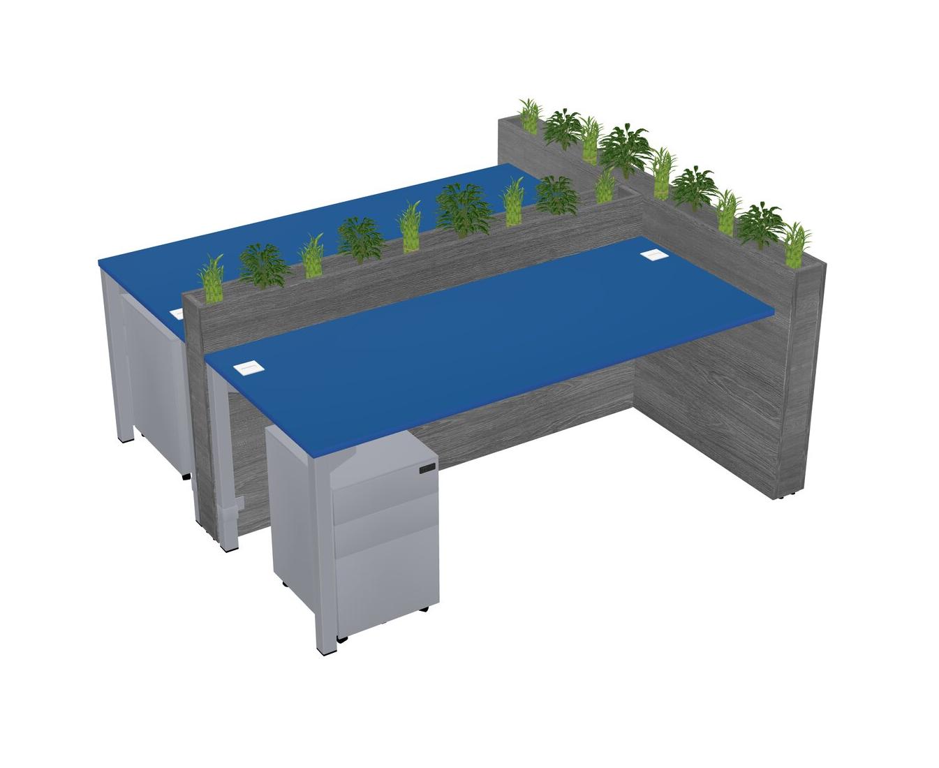 Prism Blue Rectangular Shared Office Desk System Metal Mobile Drawers (Pots & Plants Sold Separately)