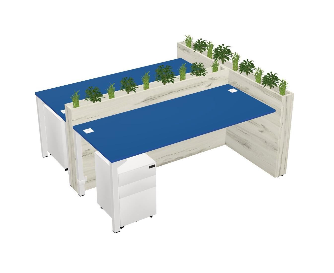 Prism Blue Rectangular Shared Office Desk System Metal Mobile Drawers (Pots & Plants Sold Separately)