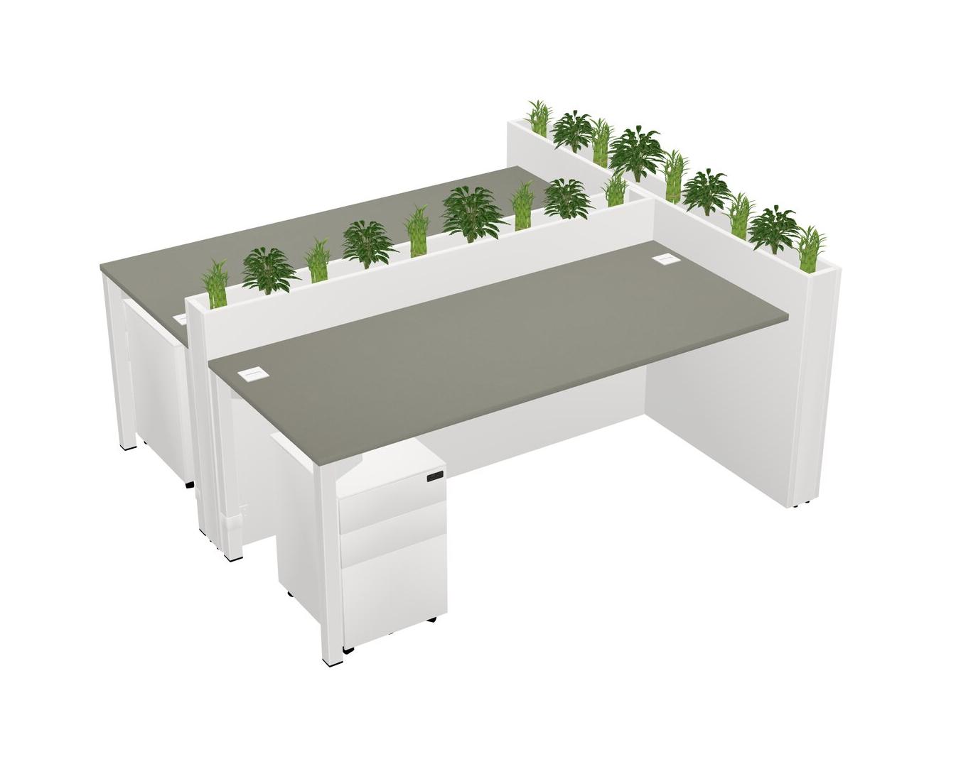 Grey Shadows Rectangular Shared Office Desk System Metal Mobile Drawers (Pots & Plants Sold Separately)
