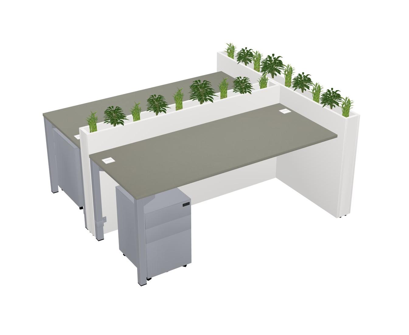 Grey Shadows Rectangular Shared Office Desk System Metal Mobile Drawers (Pots & Plants Sold Separately)
