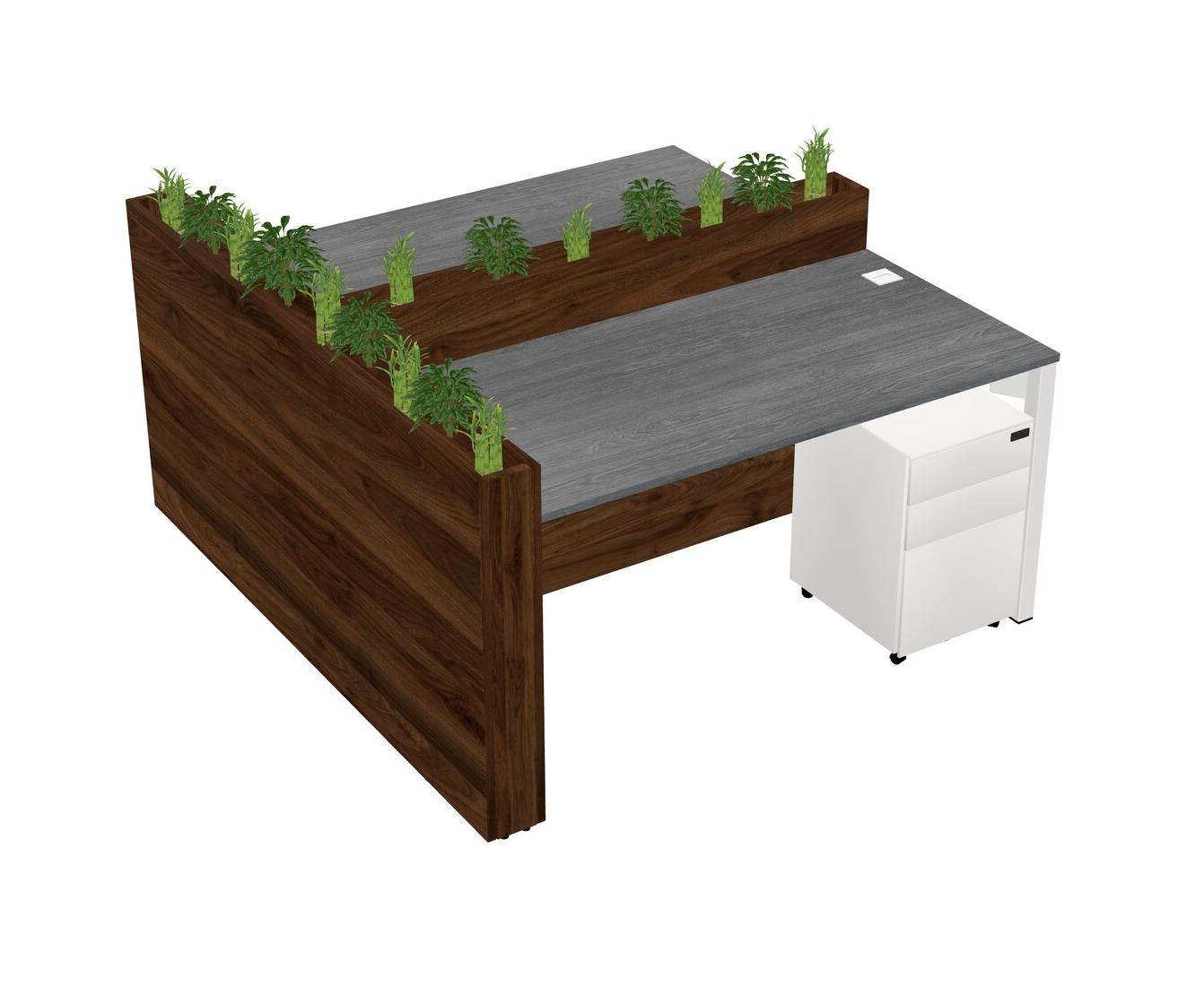 Grey Rectangular Shared Office Desk System Metal Mobile Drawers (Pots & Plants Sold Separately)