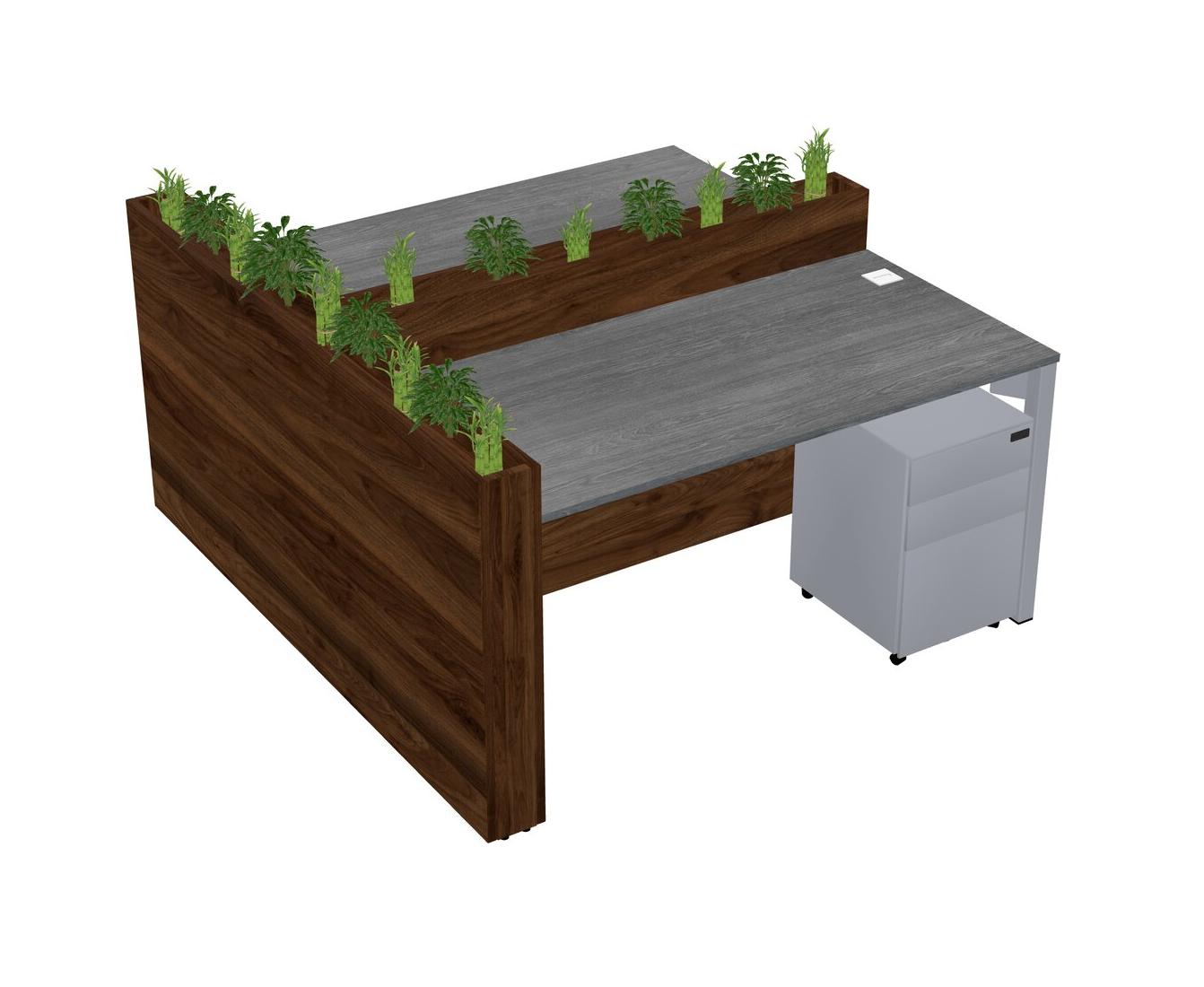 Grey Rectangular Shared Office Desk System Metal Mobile Drawers (Pots & Plants Sold Separately)