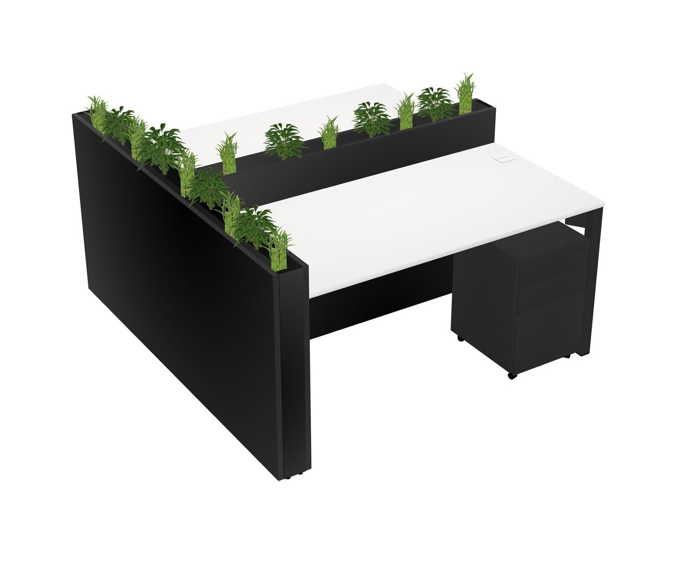 White Rectangular Shared Office Desk System Metal Mobile Drawers (Pots & Plants Sold Separately)