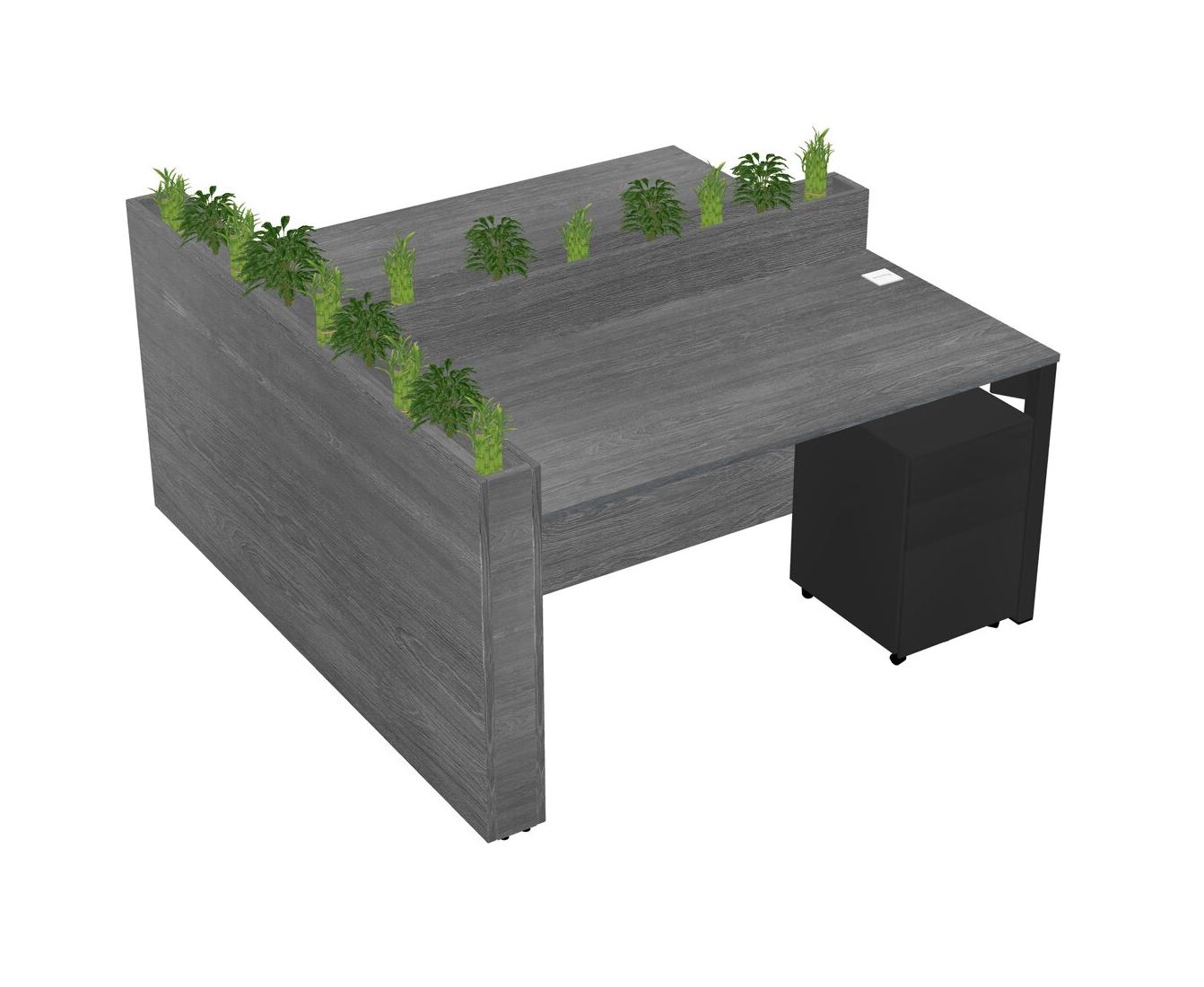 Grey Rectangular Shared Office Desk System Metal Mobile Drawers (Pots & Plants Sold Separately)