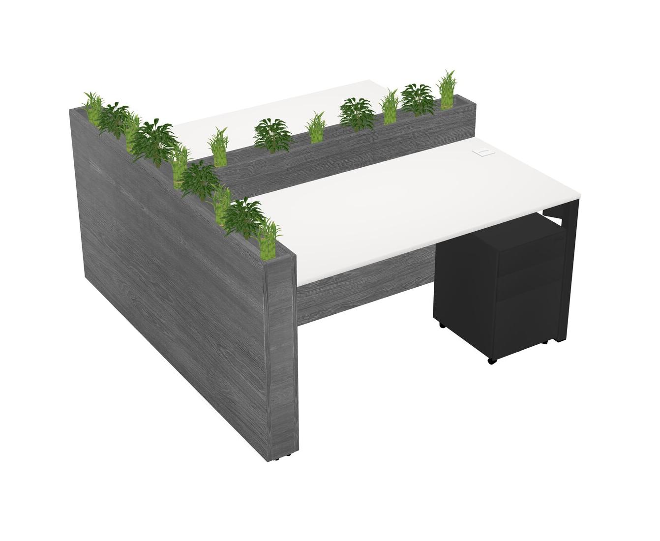 White Rectangular Shared Office Desk System Metal Mobile Drawers (Pots & Plants Sold Separately)