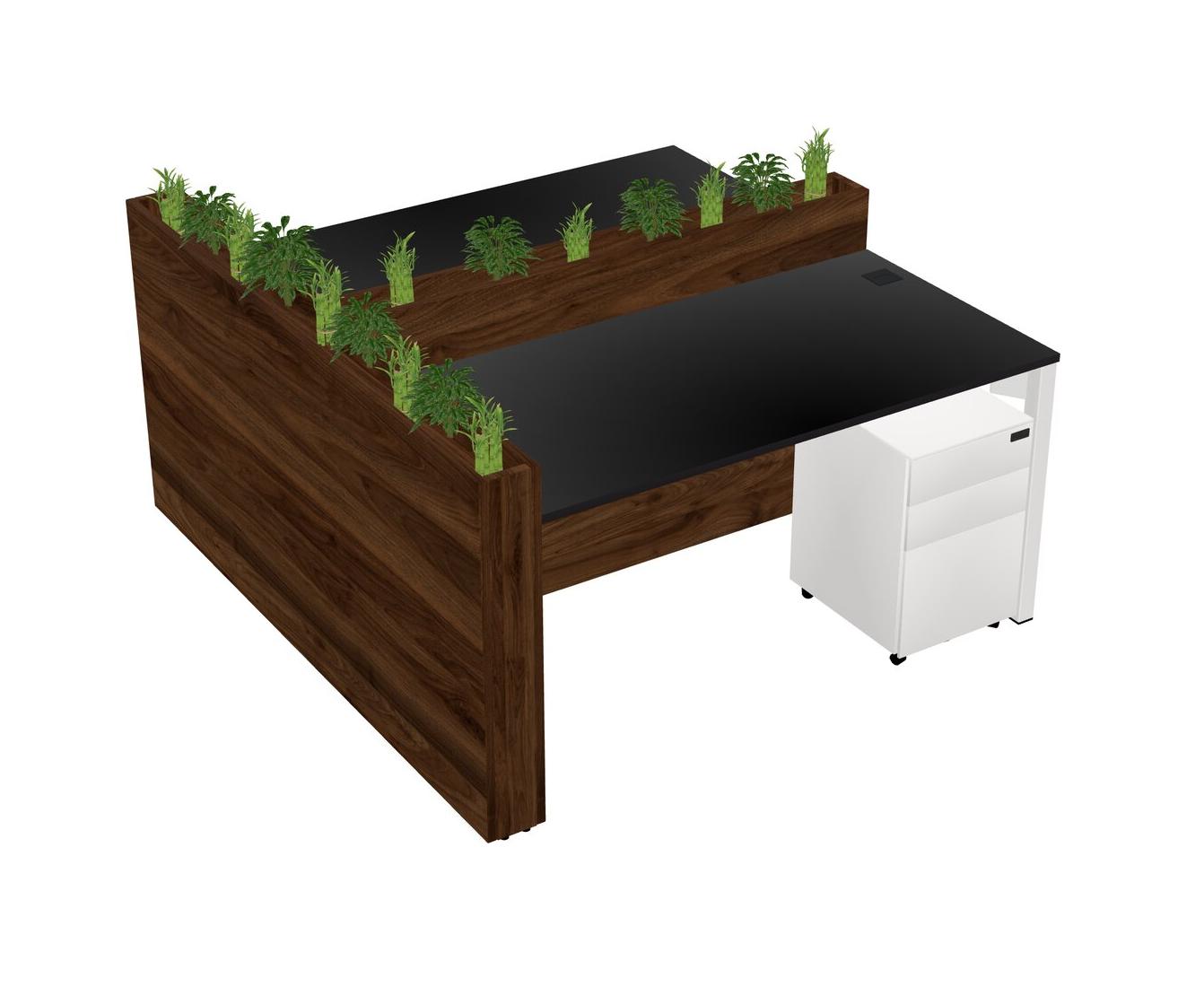 Black Rectangular Shared Office Desk System Metal Mobile Drawers (Pots & Plants Sold Separately)