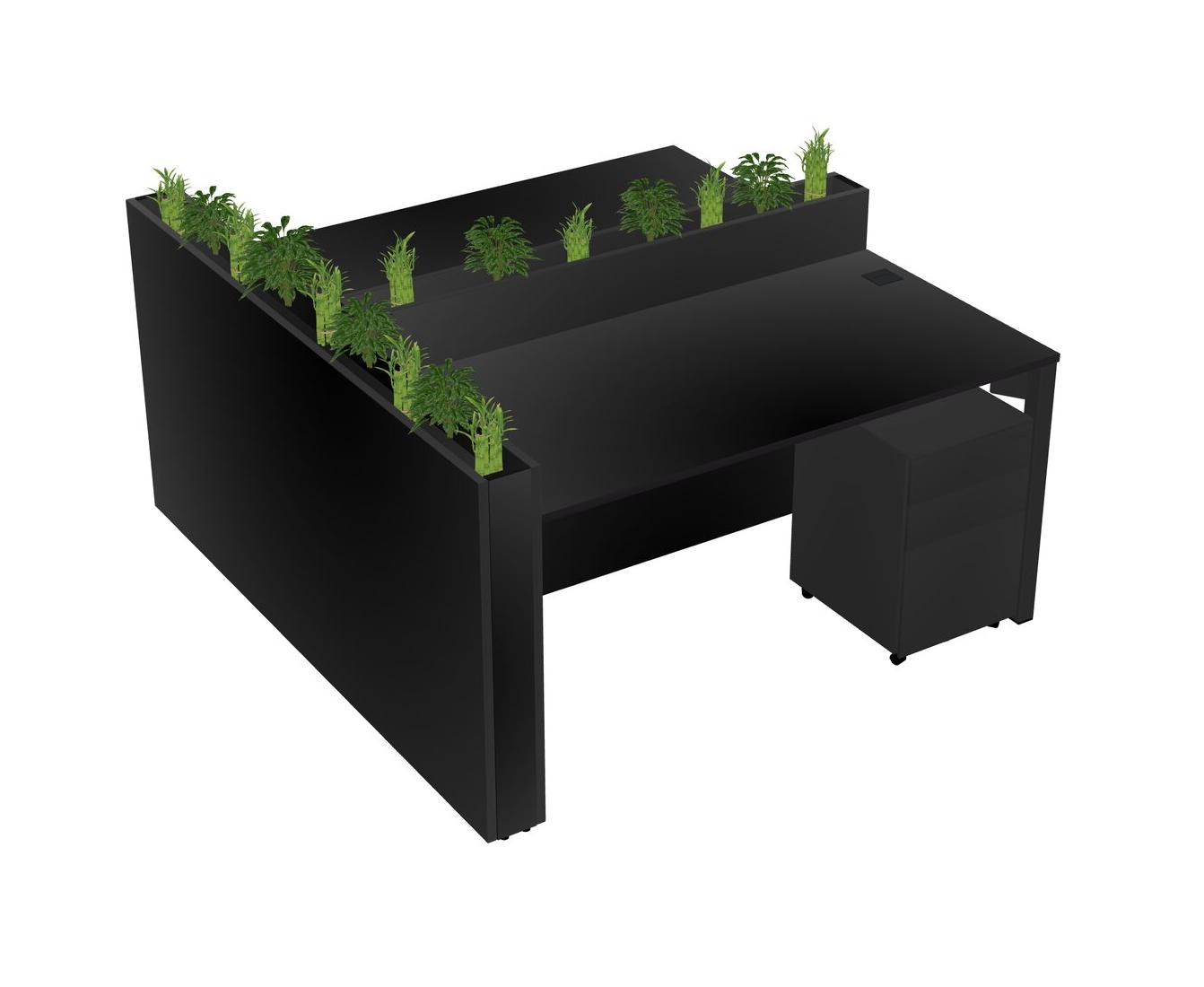Black Rectangular Shared Office Desk System Metal Mobile Drawers (Pots & Plants Sold Separately)