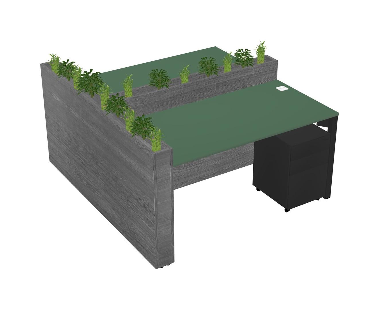 Green Rectangular Shared Office Desk System Metal Mobile Drawers (Pots & Plants Sold Separately)