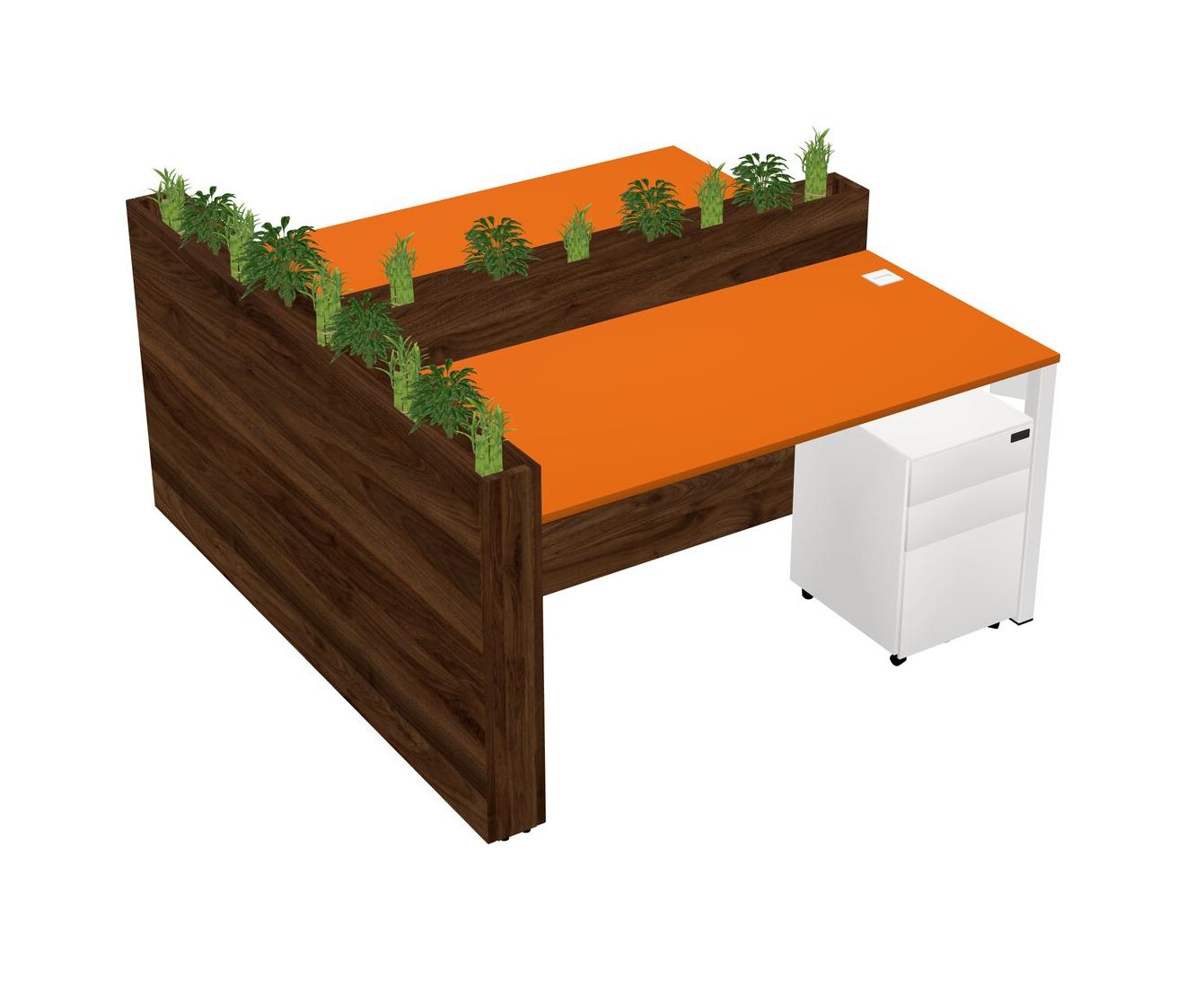 Orange Rectangular Shared Office Desk System Metal Mobile Drawers (Pots & Plants Sold Separately)