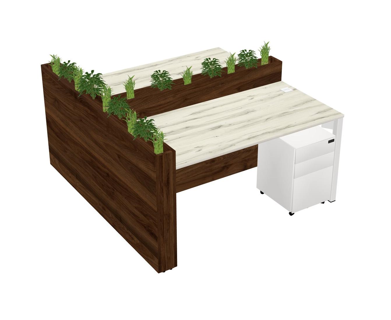 Heinne Holz Rectangular Shared Office Desk System Metal Mobile Drawers (Pots & Plants Sold Separately)
