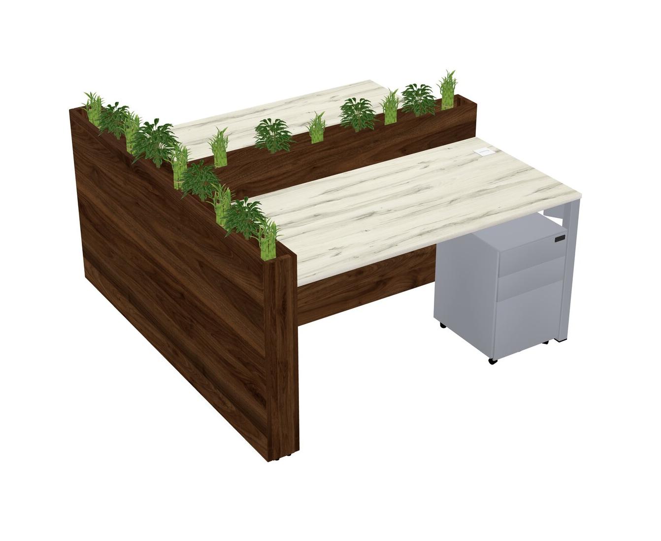 Heinne Holz Rectangular Shared Office Desk System Metal Mobile Drawers (Pots & Plants Sold Separately)