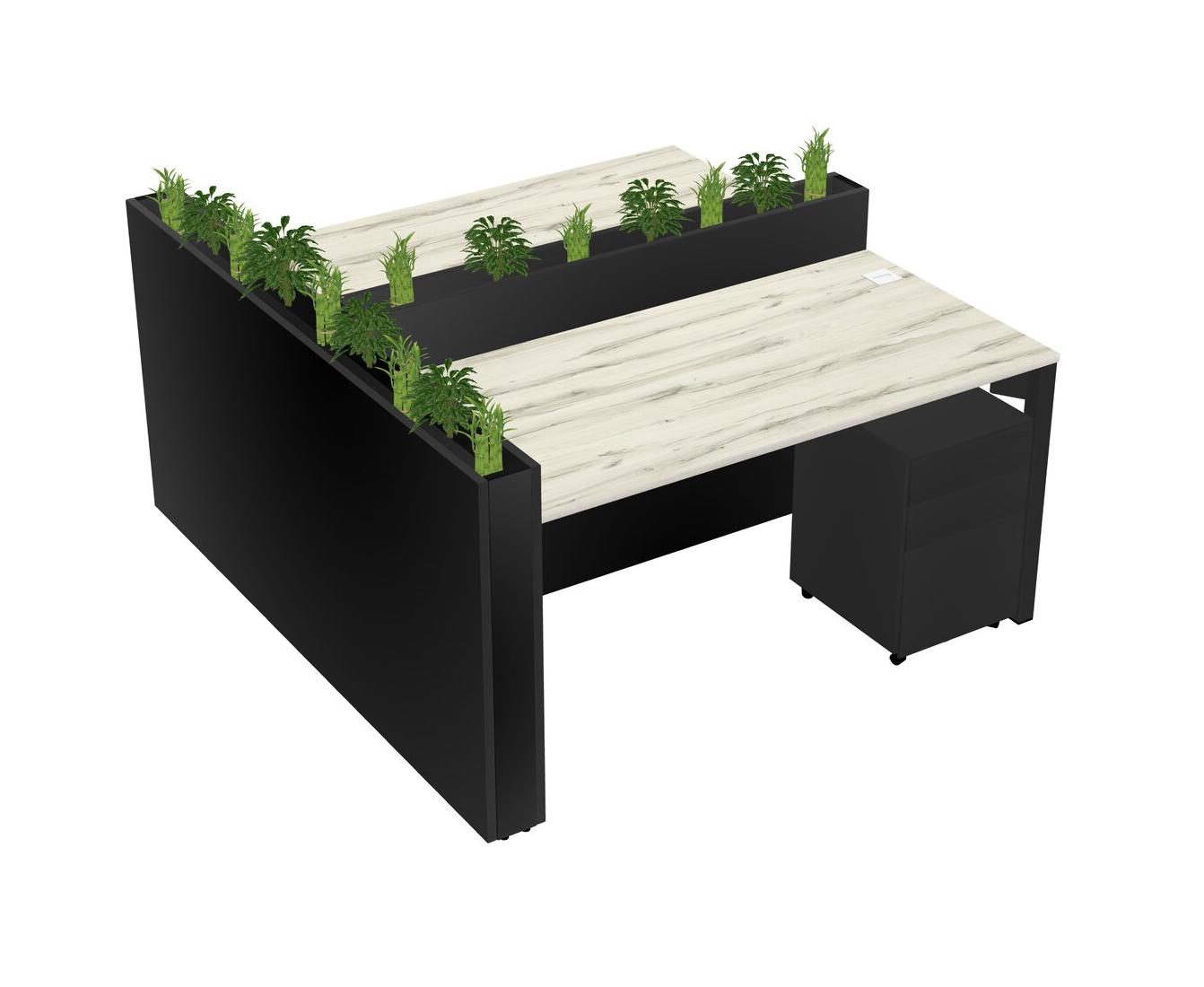 Heinne Holz Rectangular Shared Office Desk System Metal Mobile Drawers (Pots & Plants Sold Separately)