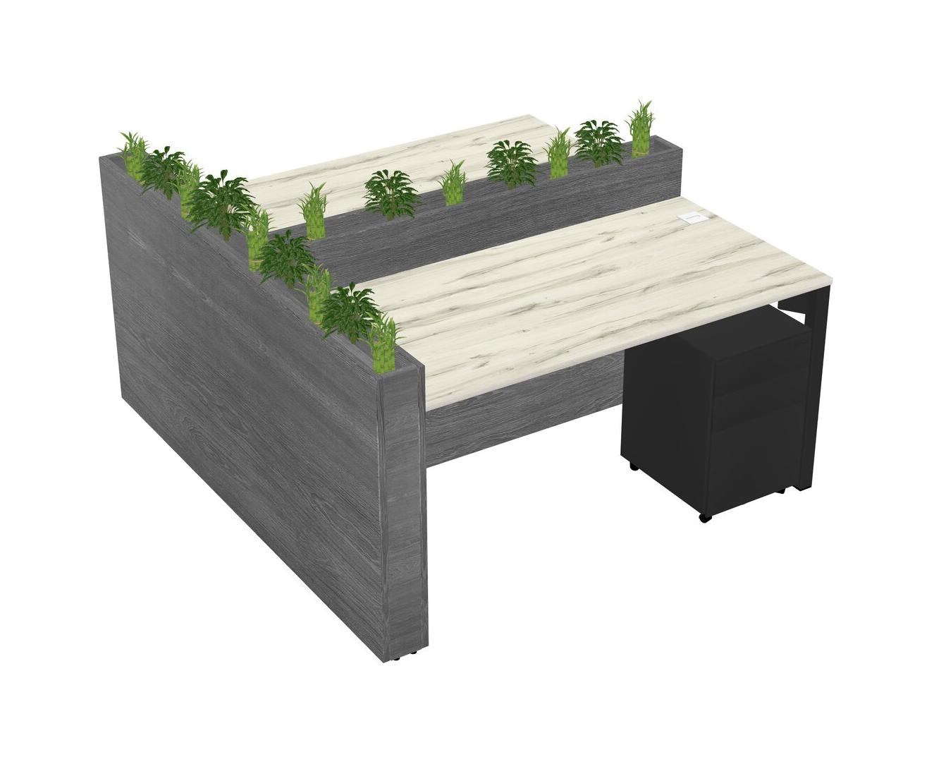 Heinne Holz Rectangular Shared Office Desk System Metal Mobile Drawers (Pots & Plants Sold Separately)