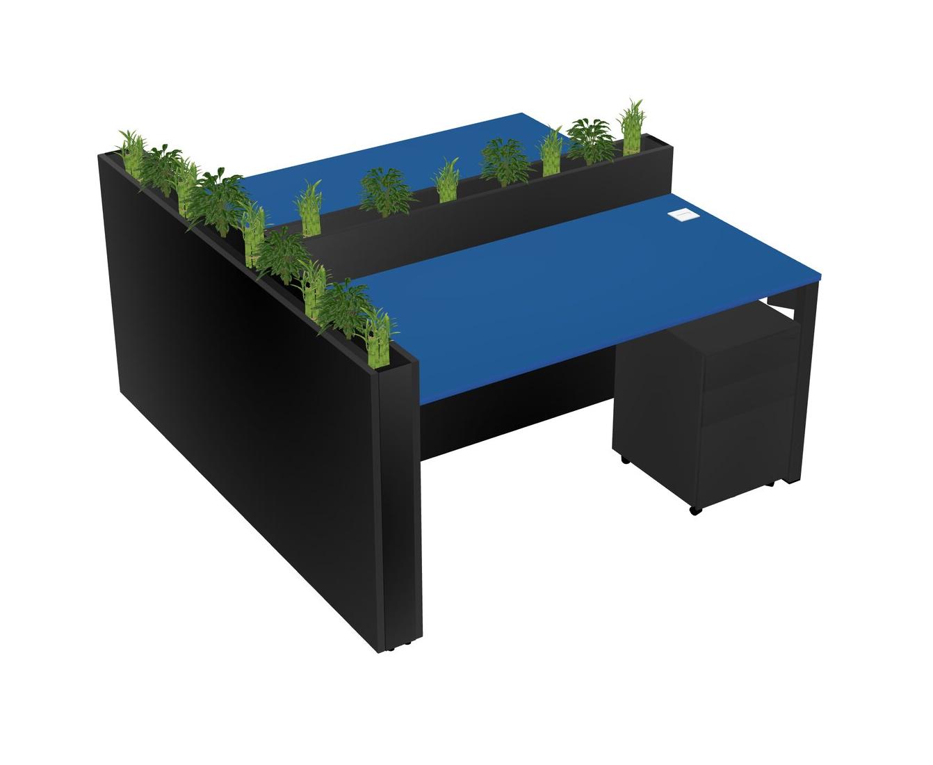 Prism Blue Rectangular Shared Office Desk System Metal Mobile Drawers (Pots & Plants Sold Separately)