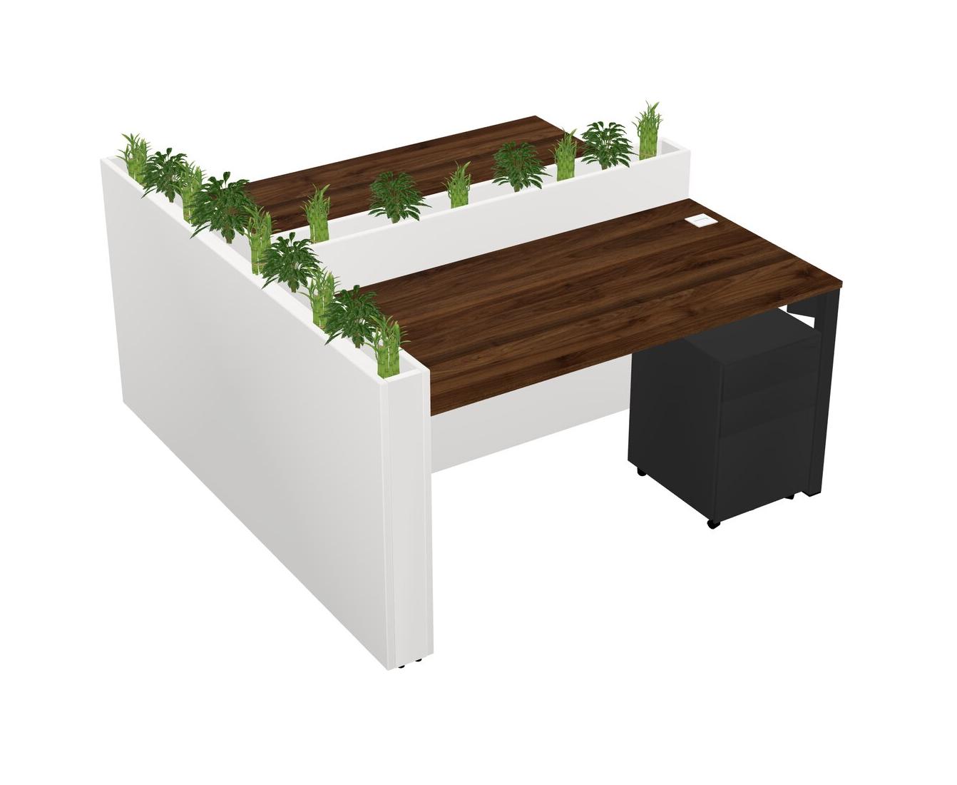 Columbia Walnut Rectangular Shared Office Desk System Metal Mobile Drawers (Pots & Plants Sold Separately)