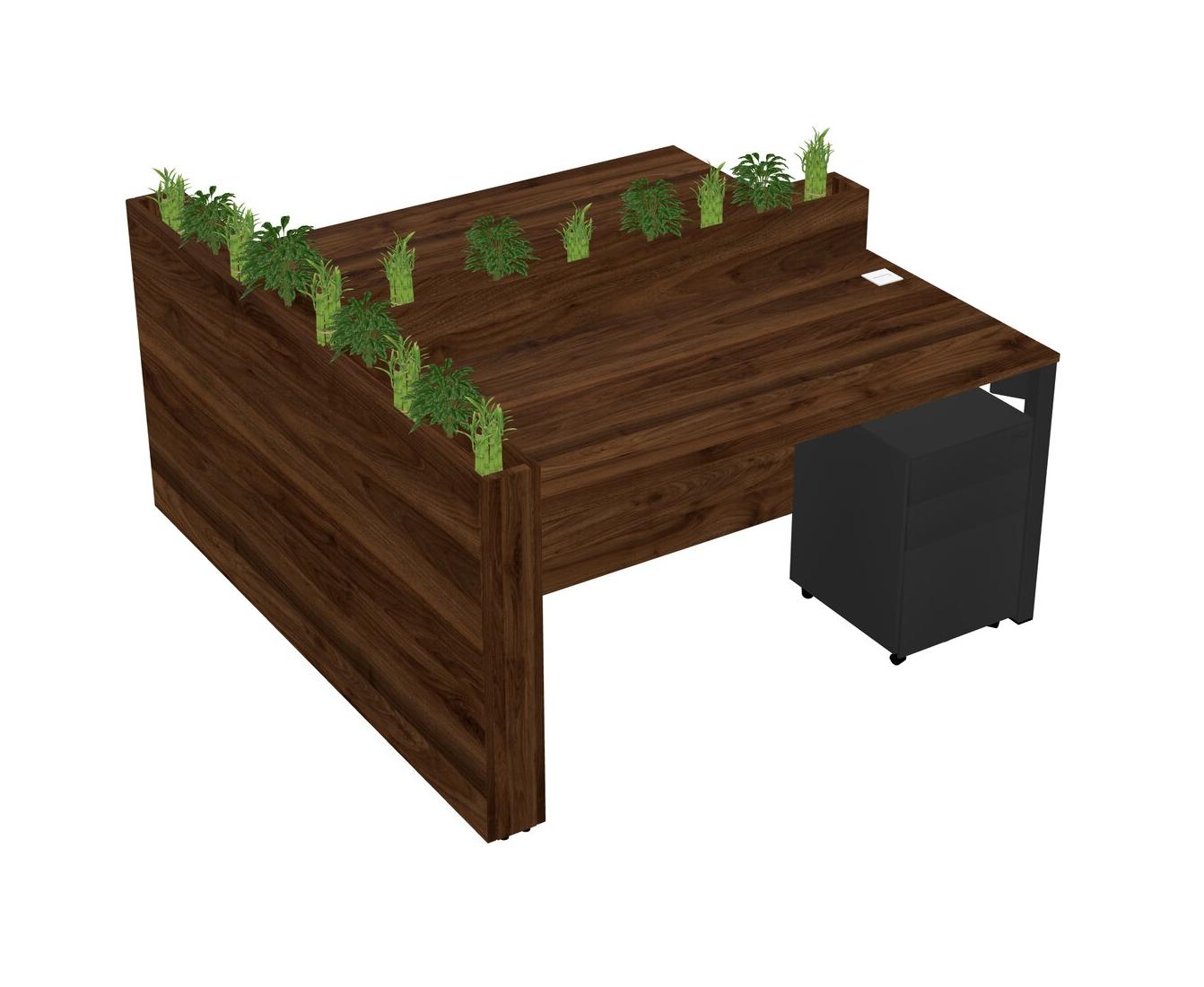 Columbia Walnut Rectangular Shared Office Desk System Metal Mobile Drawers (Pots & Plants Sold Separately)