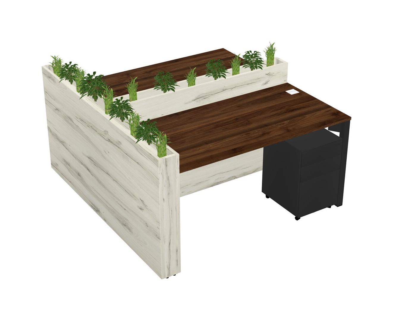 Columbia Walnut Rectangular Shared Office Desk System Metal Mobile Drawers (Pots & Plants Sold Separately)