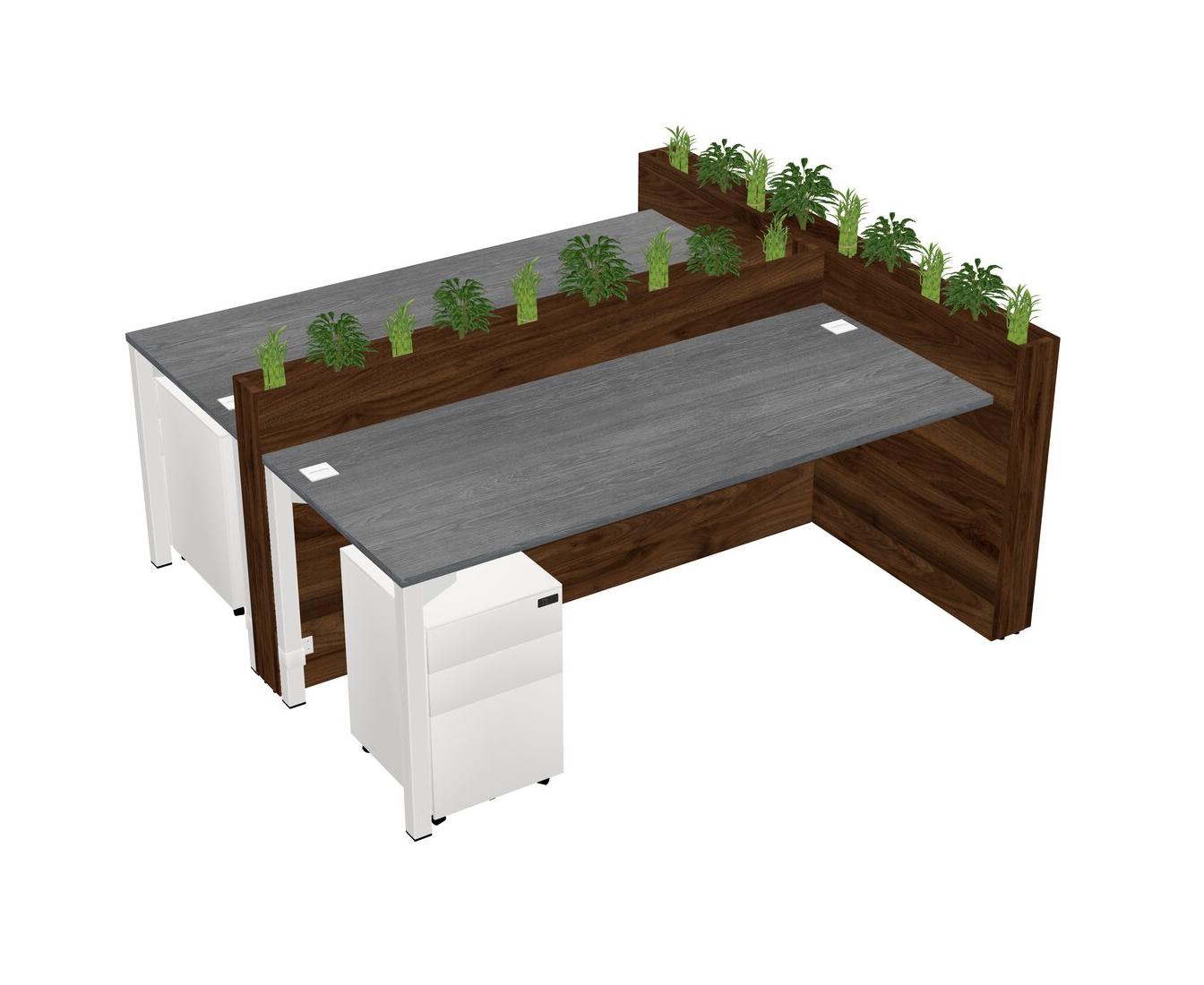 Grey Rectangular Shared Office Desk System Metal Mobile Drawers (Pots & Plants Sold Separately)