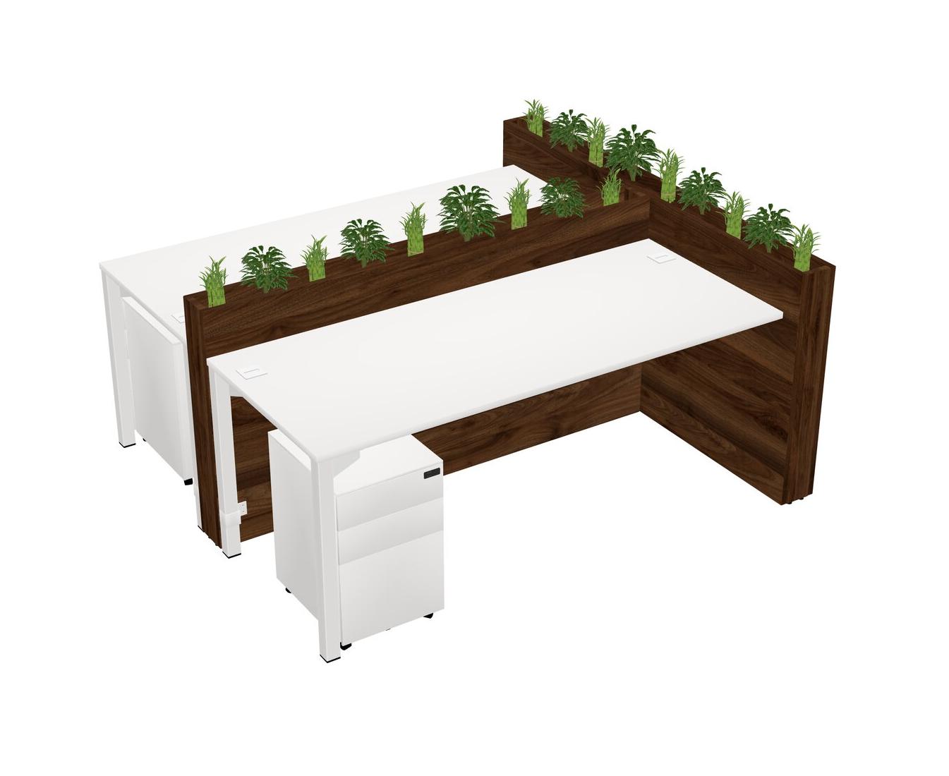 White Rectangular Shared Office Desk System Metal Mobile Drawers (Pots & Plants Sold Separately)