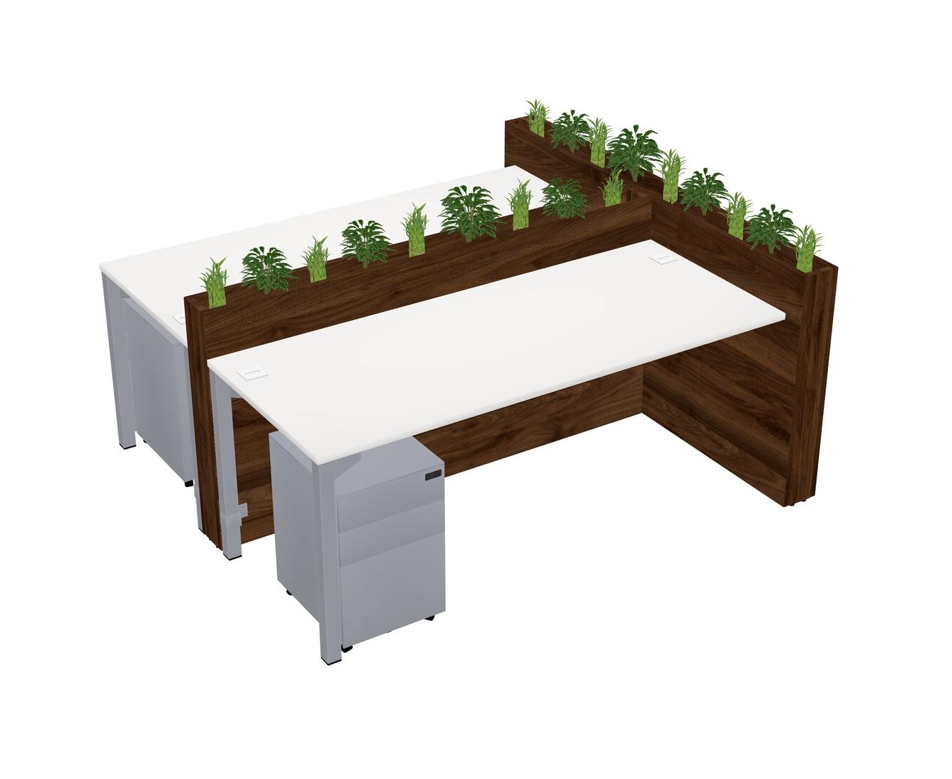 White Rectangular Shared Office Desk System Metal Mobile Drawers (Pots & Plants Sold Separately)