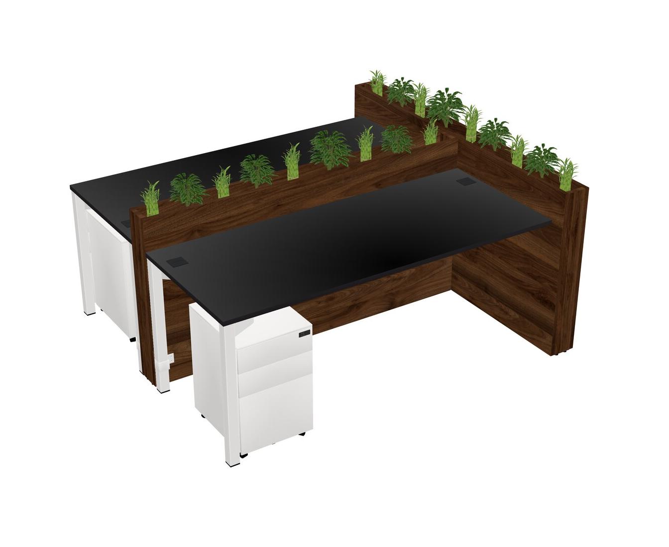 Black Rectangular Shared Office Desk System Metal Mobile Drawers (Pots & Plants Sold Separately)