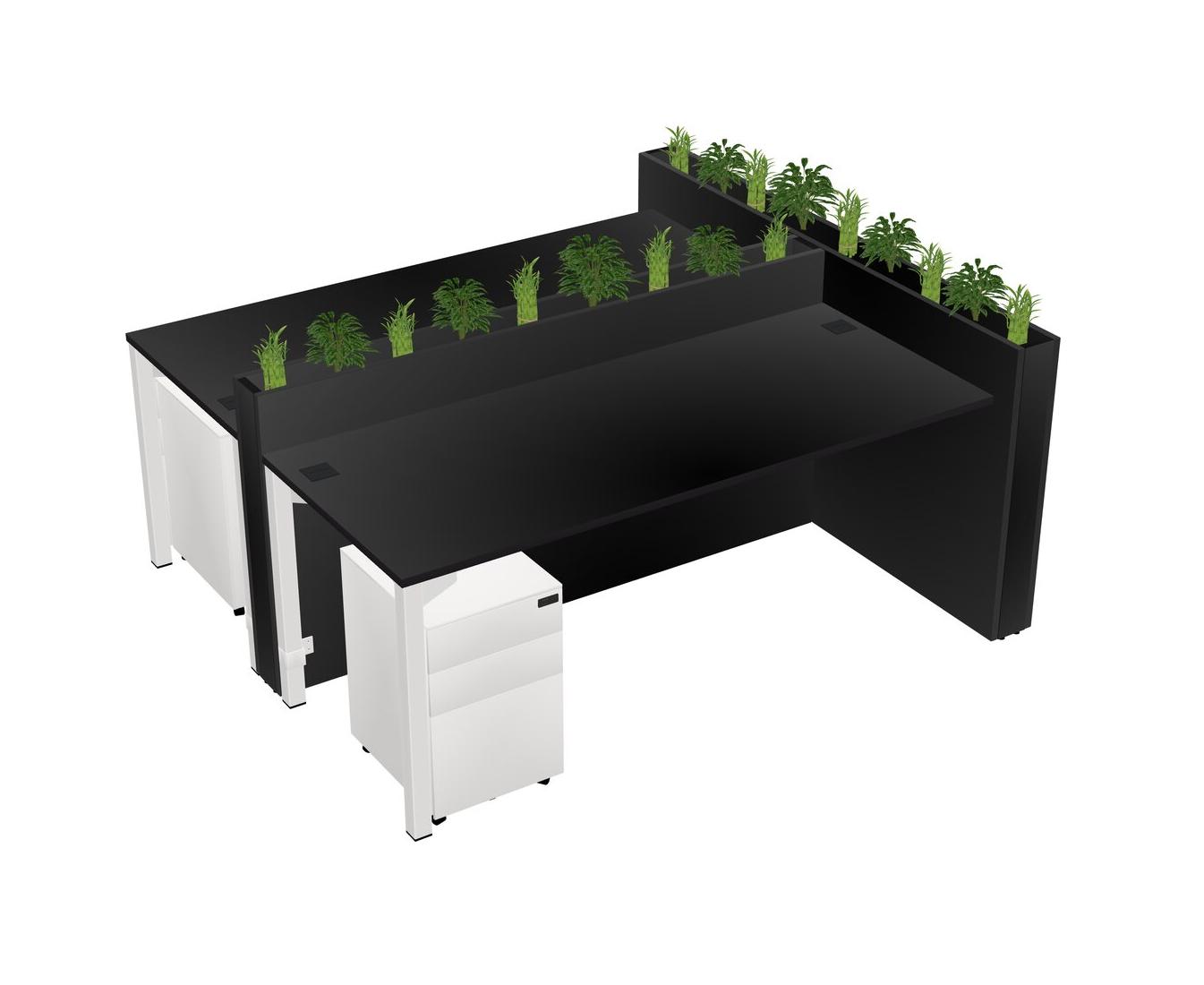Black Rectangular Shared Office Desk System Metal Mobile Drawers (Pots & Plants Sold Separately)
