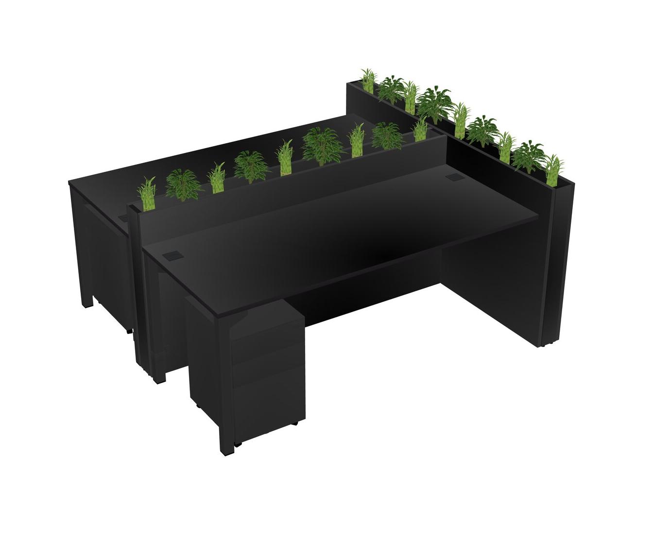 Black Rectangular Shared Office Desk System Metal Mobile Drawers (Pots & Plants Sold Separately)